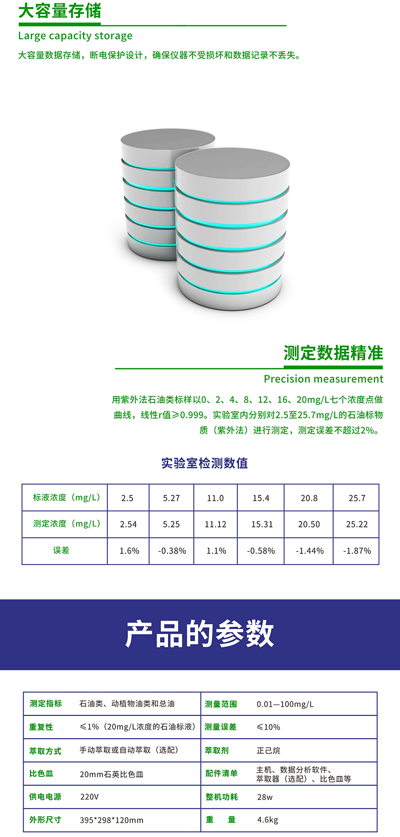 0.01-100mg/L, 石油類測定檢出限為0.01mg/L,動植物油類檢出限為0.5mg/L