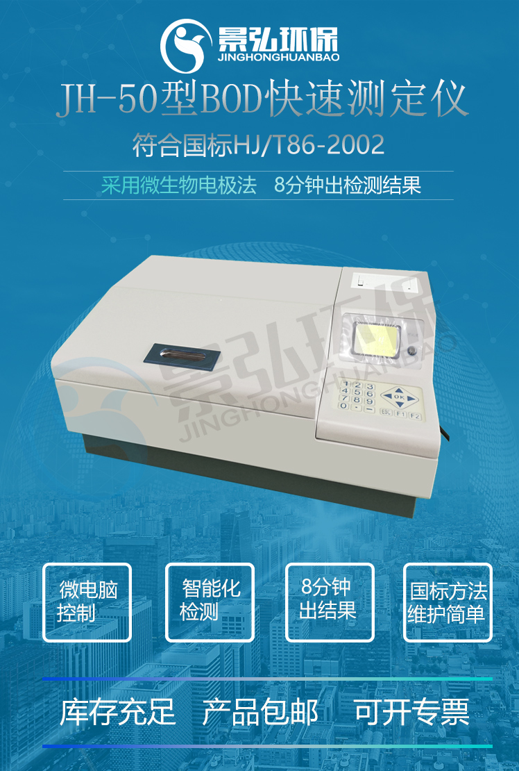 JH-50型BOD快速測定儀采用微生物電*法,能快速測定水樣中的BOD值,而且操作簡便,測量準確,測定速度快,適用于測定地表水、生活污水、不含對微生物明顯毒害作用的工業(yè)廢水中的 BOD。