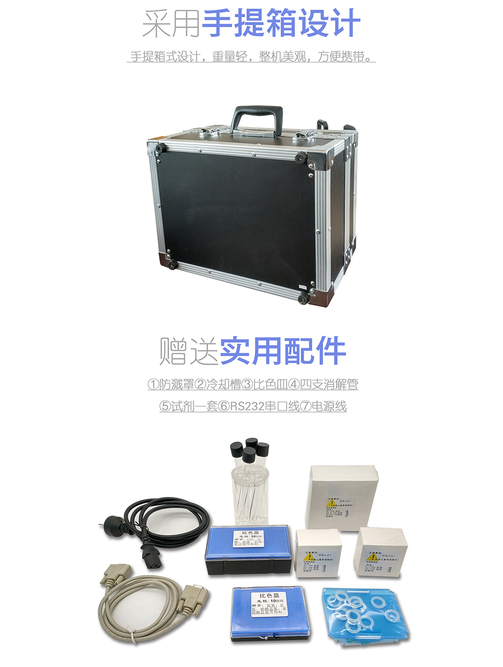 11.手提箱式設(shè)計(jì),重量輕,整機(jī)美觀,方便攜帶;