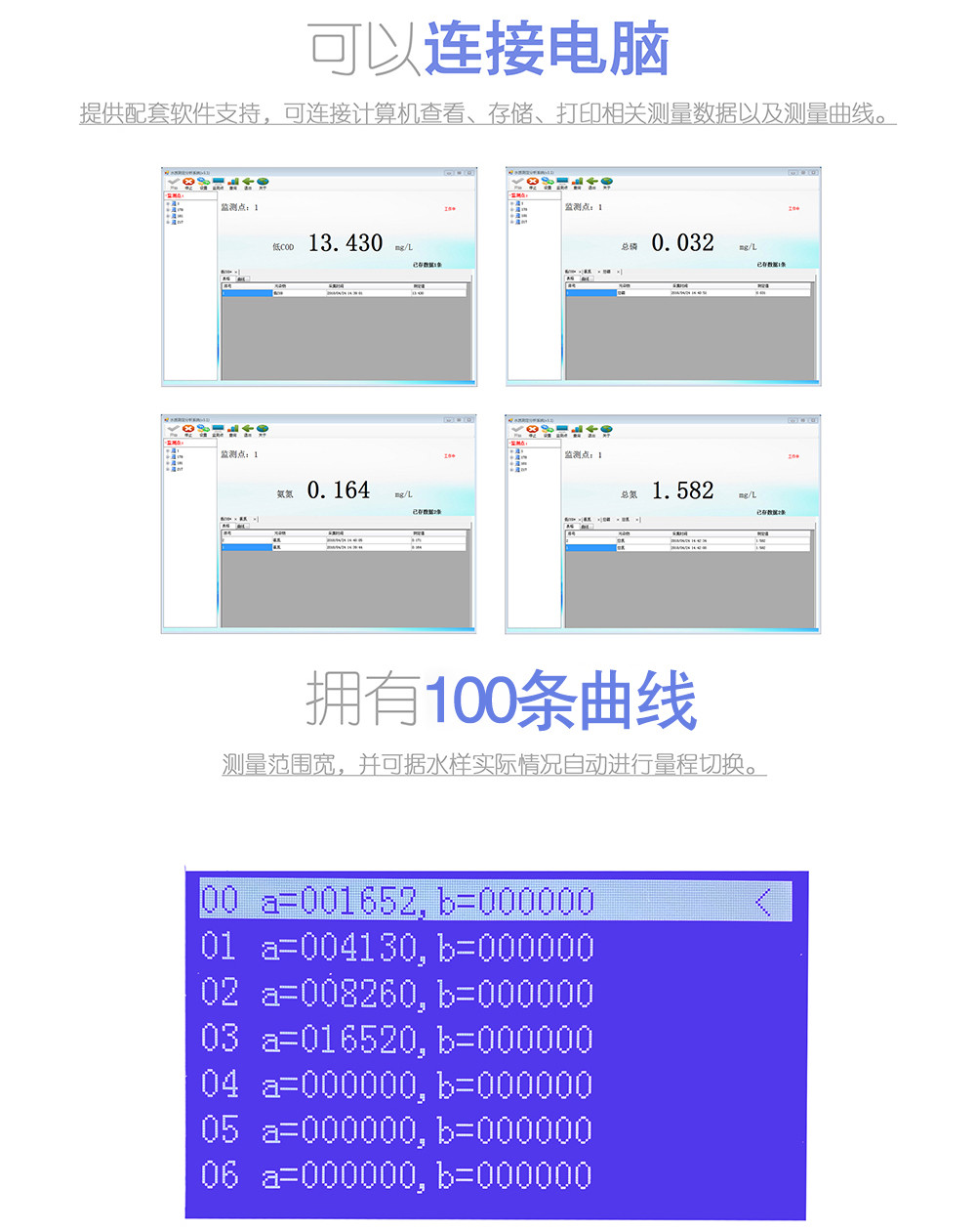 2. 測定范圍:0.01mg/L~100mg/L(>20mg/L時分段測定,超量程可稀釋測量);
